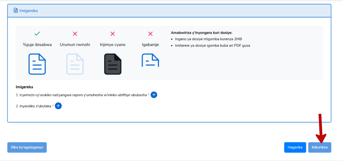 6..Ongeraho inyandiko zose zisabwa mu buryo (format) n’ingano (size) bikwiye.