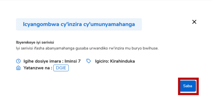 Icyitonderwa: Nyuma yo gusaba no kwishyura neza ukoresheje IremboGov, usaba azahabwa ubutumwa bumumenyesha buturutse ku DGIE bumusaba kujya ku biro byabo kugira ngo ahabwe amabwiriza ajyanye n’ubusabe bwe.