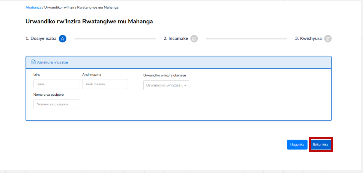 3. Uzuza amakuru y’usaba hanyuma ukande kuri “Ibikurikira” kugira ngo ukomeze.