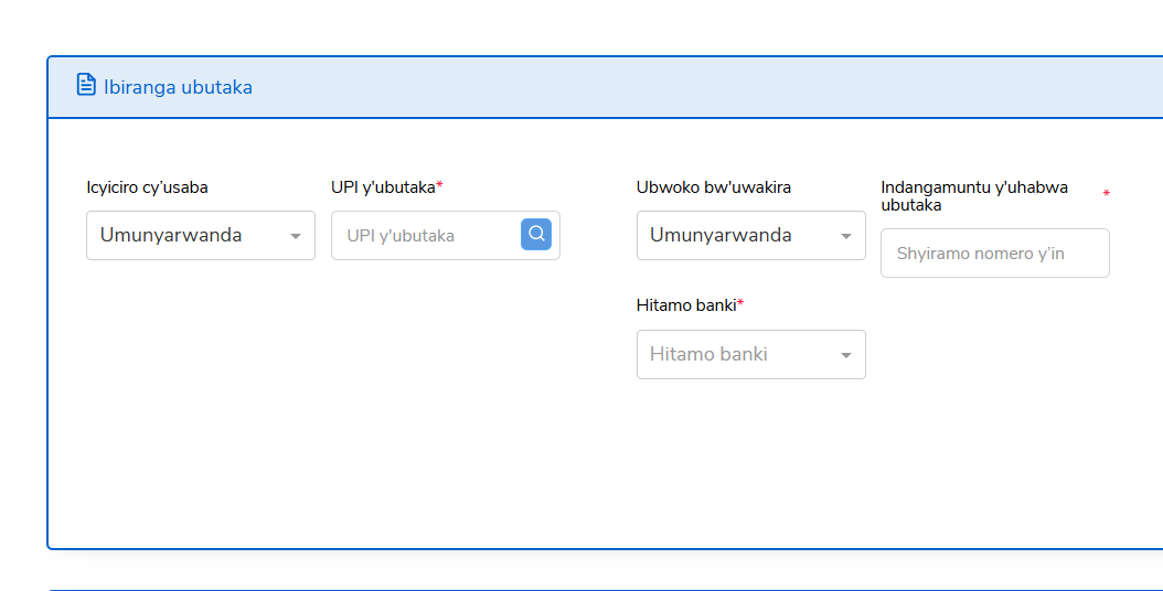 4. Uzuza amakuru yose asabwa y’Usaba n’ay’Ubutaka. Amakuru azahita aboneka kandi agaragare ku ruhande rw’iburyo rwa paji.
