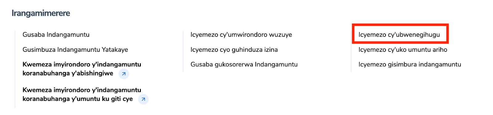 Mu gice cy’ “Irangamimerere”,Hitamo “Icyemezo cy’ubwenegihugu.