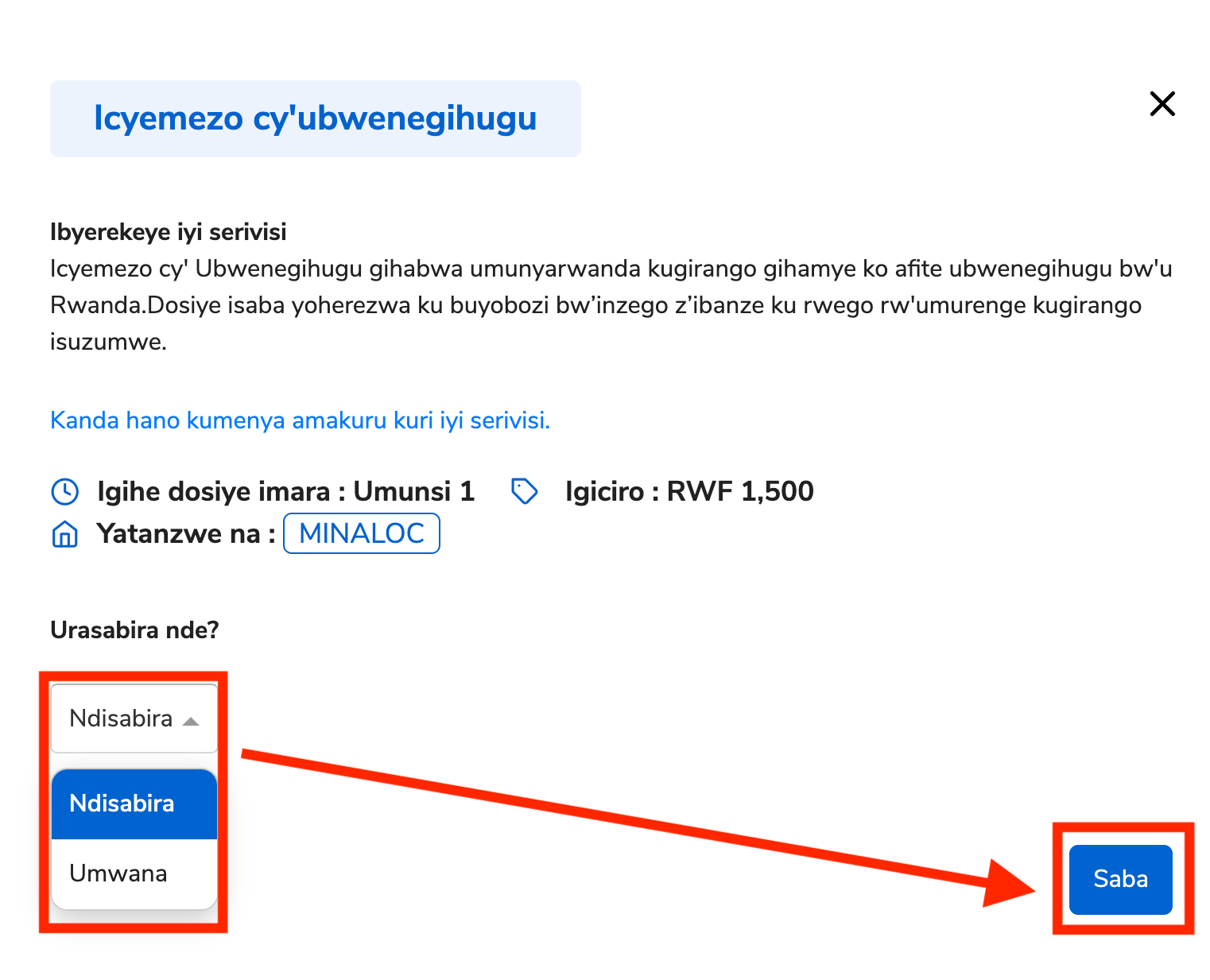 Hitamo uwo usabira;(Ndisabira cyangwa umwana),hanyuma ukande “Saba”.