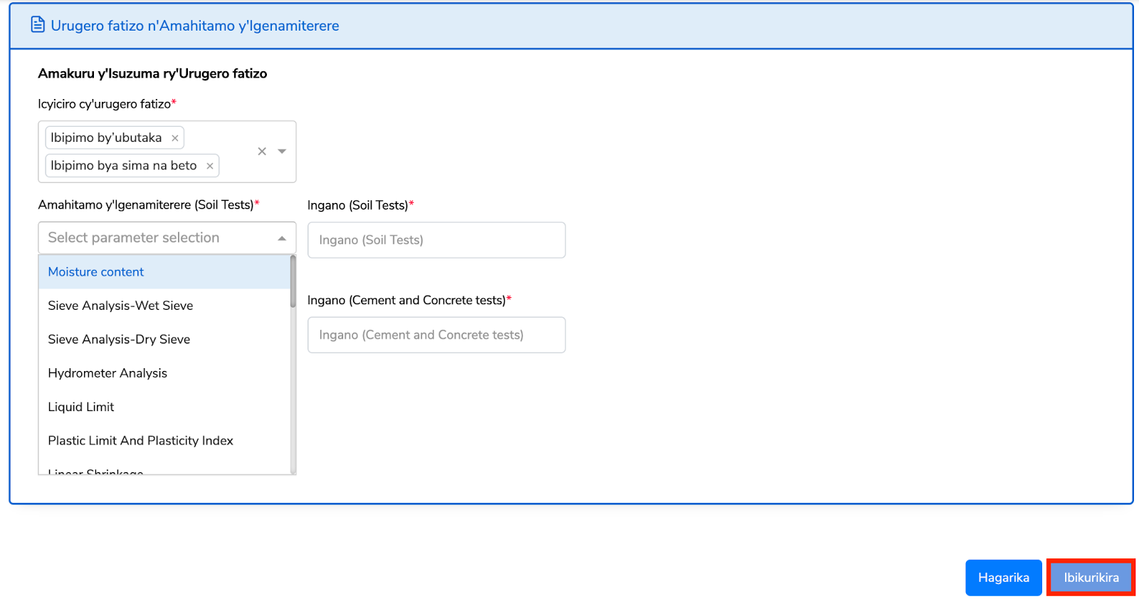 Serivisi y'amasuzuma yo muri laboratwari n'ayo kuri site y'ibikorwa y'imirimo ya leta igufasha gusaba no kwishyurira amasuzuma anyuranye yo muri laboratwari n'ayo kuri site y'ibikorwa akorwa n'ikigo cy'igihugu gishinzwe iterambere ry'ubwikorezi (RTDA). Iyi serivisi igenewe abantu ku giti cyabo, amasosiyete yigenga n'ibigo bya leta bishaka gupima ibikoresho bikoreshwa mu mishinga y'ibikorwa remezo.