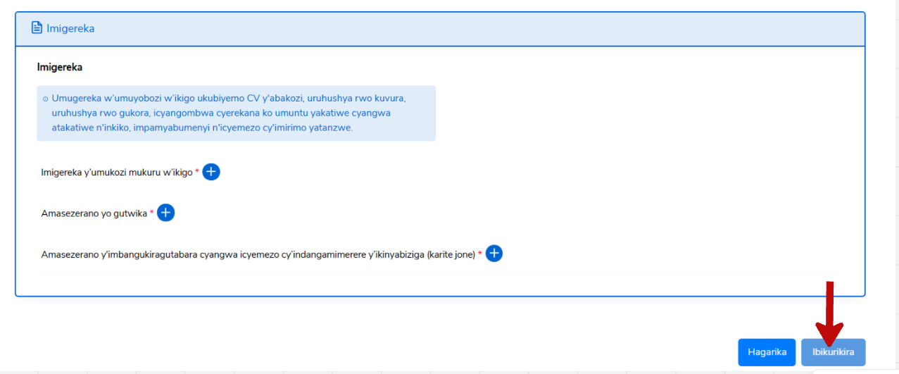 Intambwe ya 5: Shyiraho (upload) inyandiko zisabwa mu buryo (format) bukwiye, zirimo “Imigereka y’umuyobozi mukuru,” hanyuma ukande kuri Ibikurikira kugira ngo ukomeze
