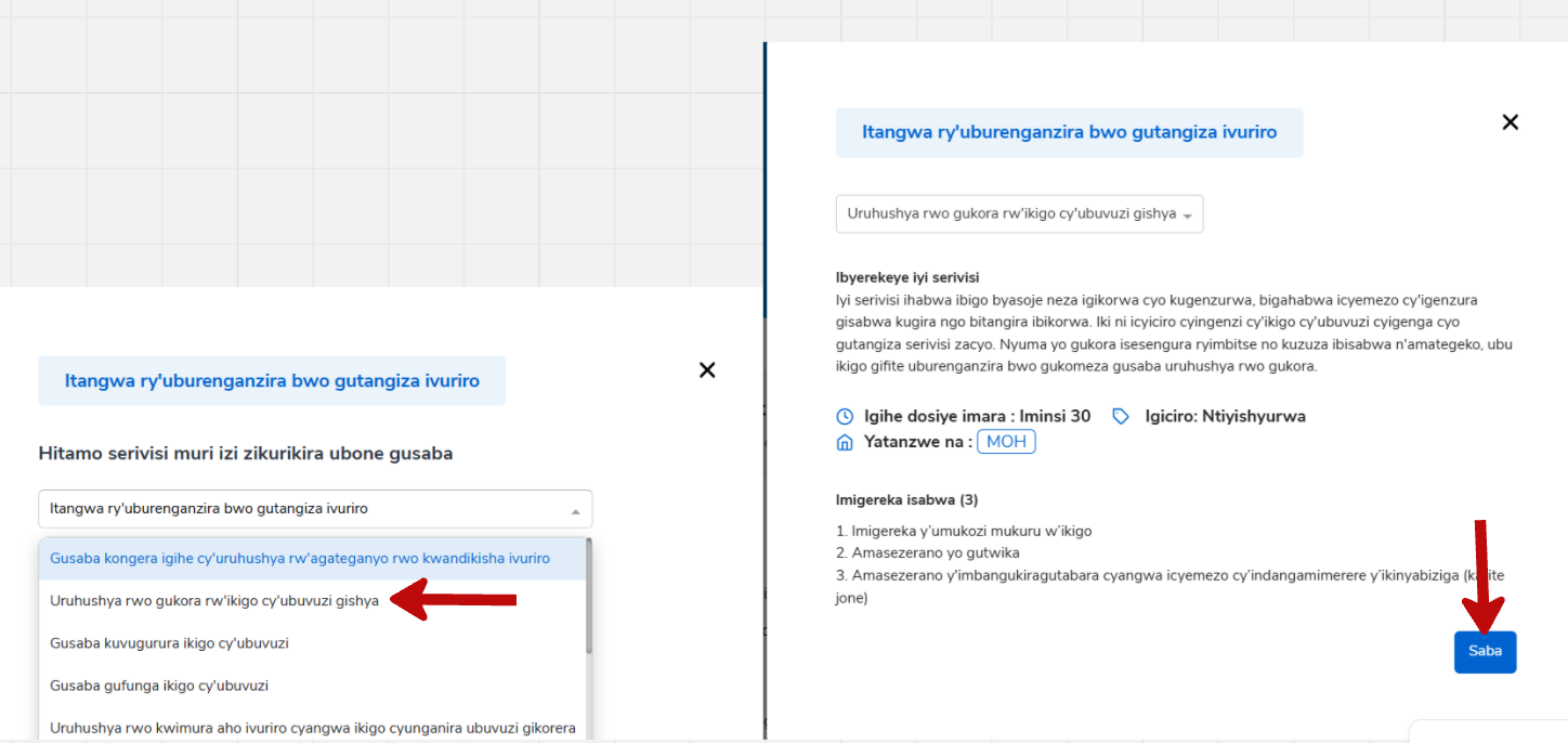 Intambwe ya 7: Hazahita hakorwa nomero y’ubusabe (B2……..) izagufasha gukurikirana aho ubusabe bwawe bugeze.