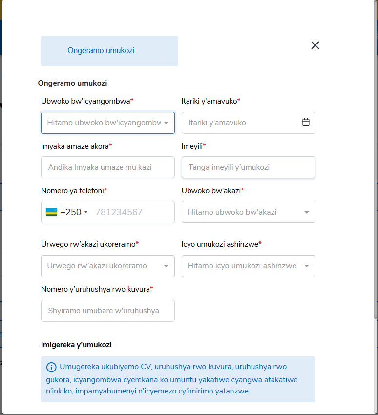 Intambwe ya 4: Kanda kuri “Ongeramo umukozi” kugira ngo wuzuze amakuru. Hazafunguka agace (tab) ko kwandikamo amakuru asabwa.