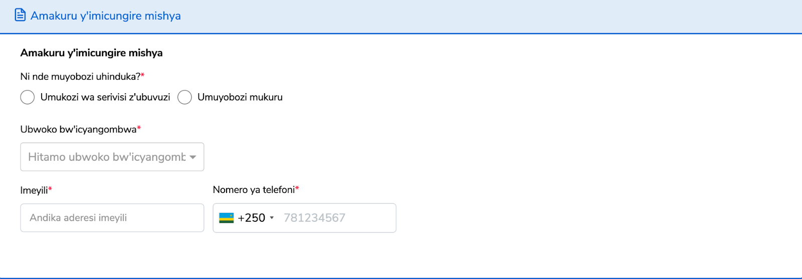 Reba ko amakuru watanze ari yo, ushyiremo nomero ya telefone na/cyangwa imeyili (email) maze ukande kuri Ohereza.