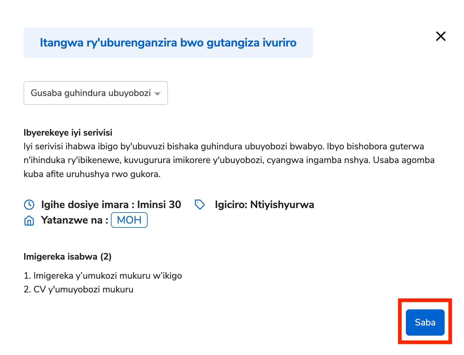 Abasaba bafite cyangwa badafite konti y’IremboGov bashobora gusaba iyi serivisi.