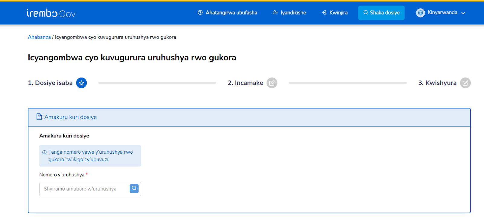 Intambwe ya 7: Hazahita hakorwa nomero y’ubusabe (B2……..) izagufasha gukurikirana aho ubusabe bwawe bugeze.