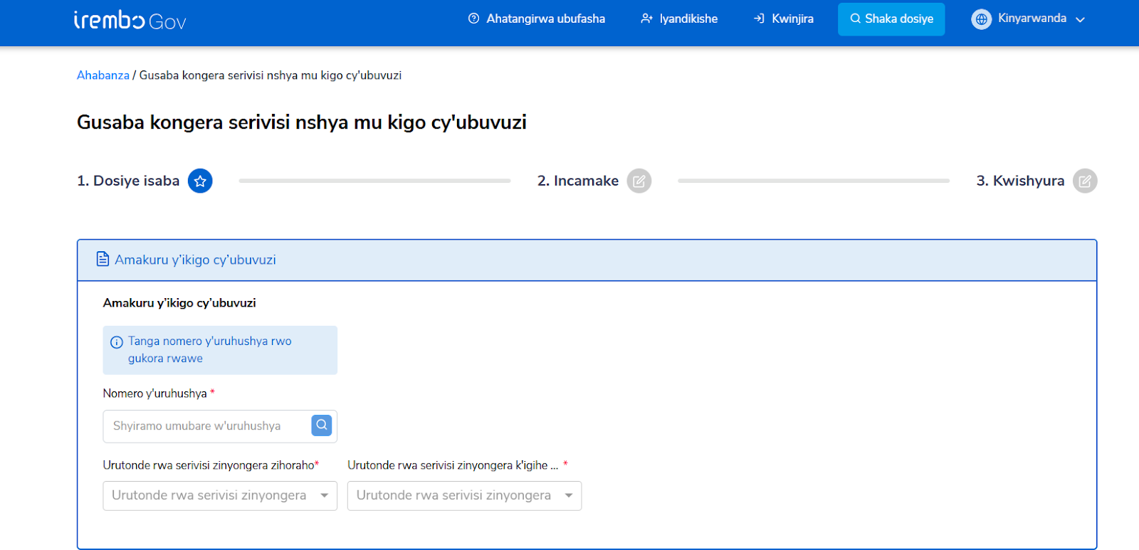 Intambwe ya 3: Uzuza amakuru y’ikigo cy'ubuvuzi (nomero y’uruhushya, urutonde rwa serivisi nshya zitangwa igihe cyose (full-time), n’urutonde rwa serivisi nshya z’igihe gito (part-time)).