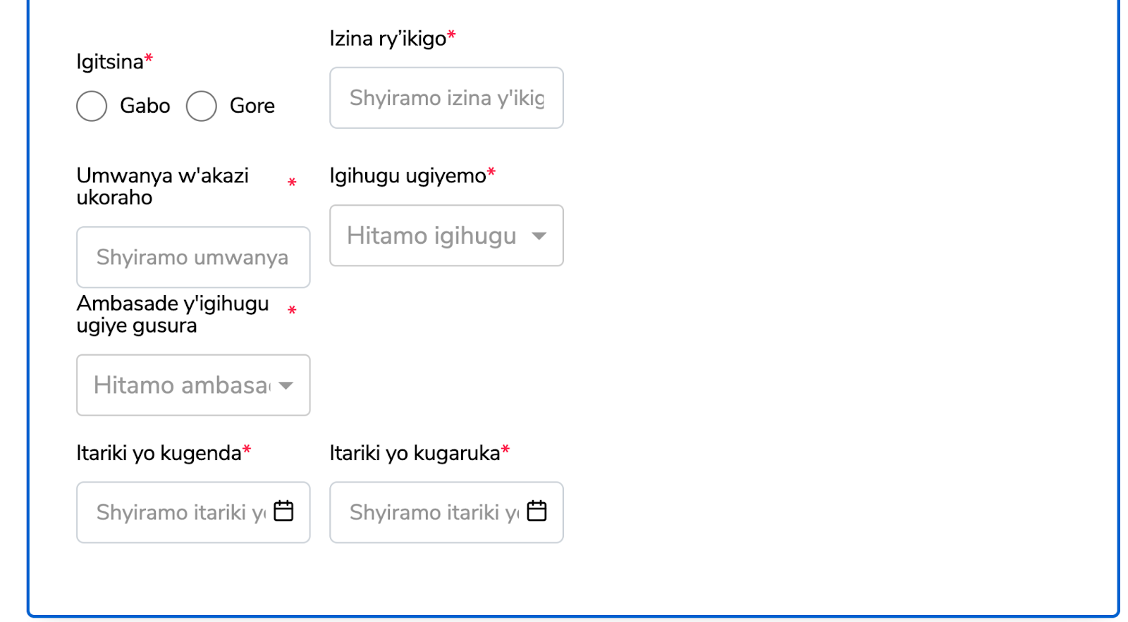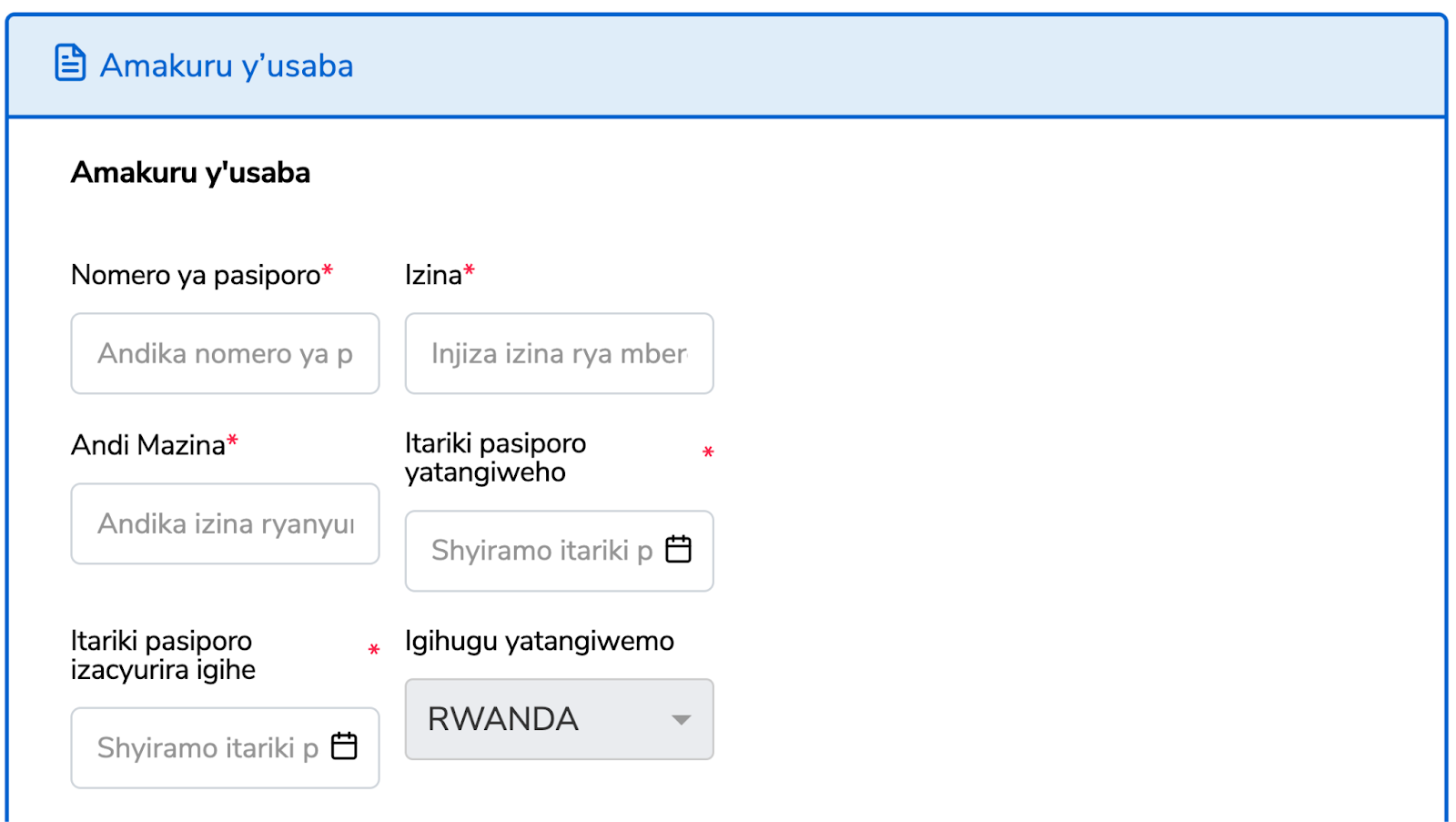 Intambwe ya 3: Andika amakuru yawe,umwirondoro w'usaba, "(nka nomero ya pasiporo, izina ry'aho agiye, itariki yo kugenda, itariki yo kugaruka n'ibindi).