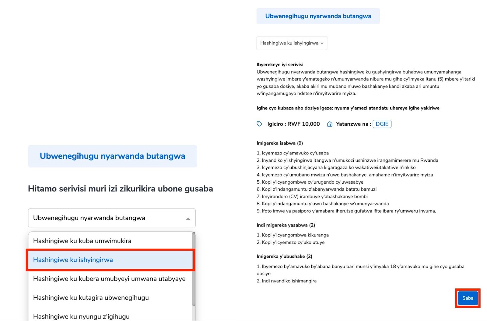 Kurikiza izi ntambwe zoroshye kugira ngo usabe “Ubwenegihugu nyarwanda butangwa: Hashingiwe ku ishyingirwa”