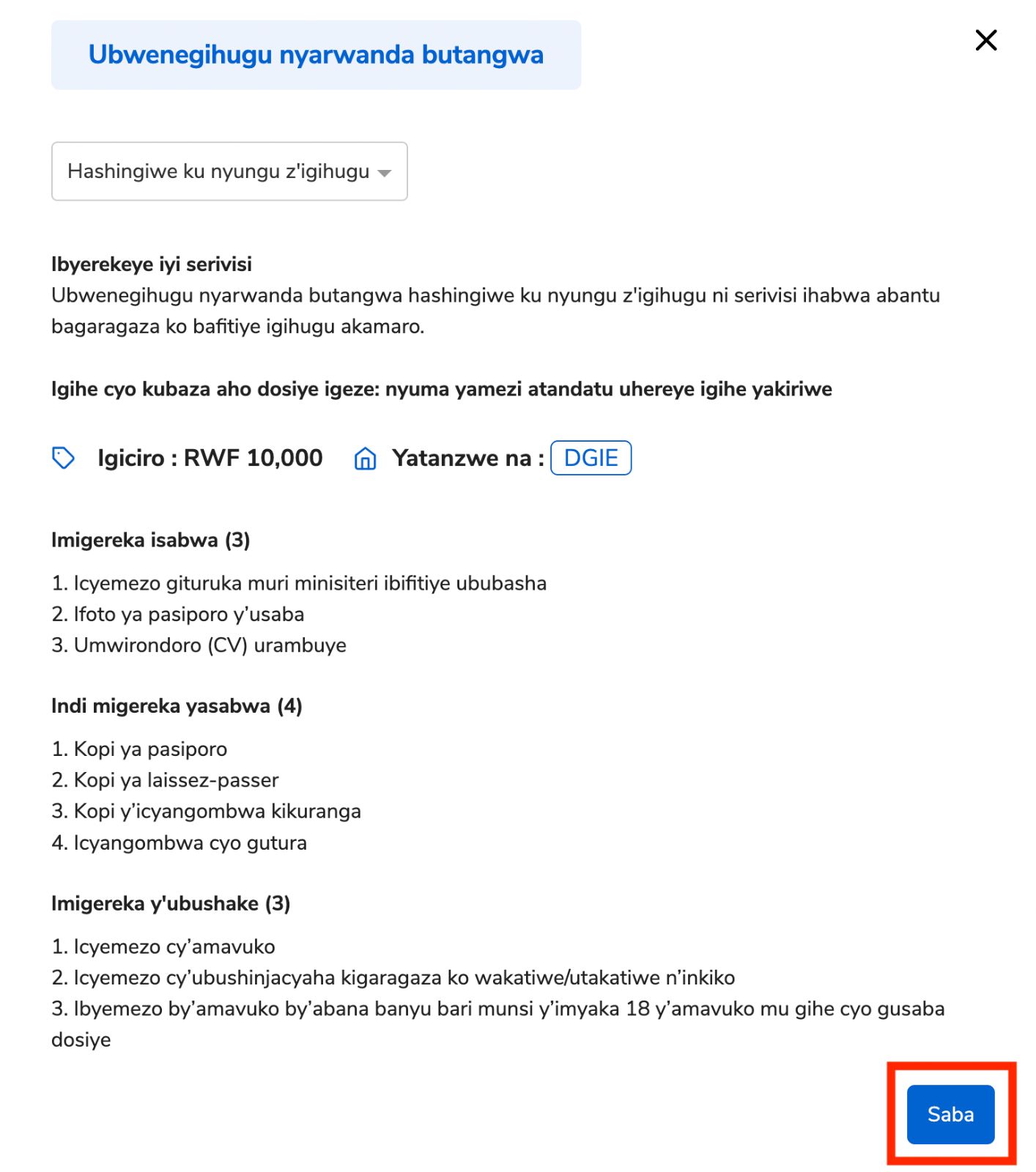 Kurikiza izi ntambwe zoroshye kugira ngo usabe “Ubwenegihugu nyarwanda butangwa: Hashingiwe ku nyungu z’igihugu”