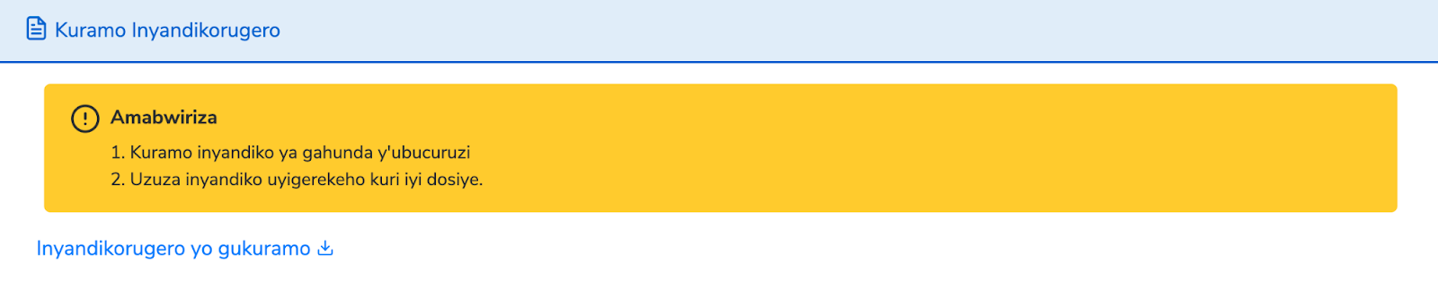 Nyuma yo kohereza ubusabe bwawe,uhabwa nomero ya dosiye (B2….) wakoresha ukurikirana aho dosiye yawe igeze.