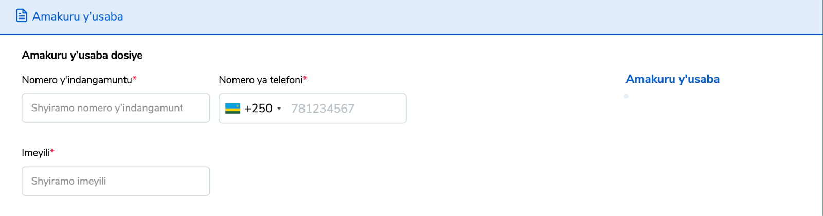 Abasaba bagomba kuba bafite nomero ya telefoni ikora na imeri cyangwa byombi.