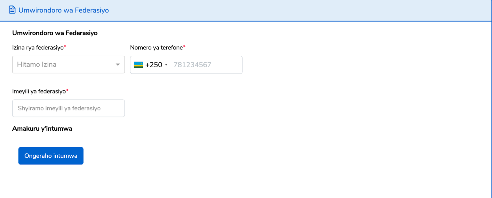 Uzuza Umwirondoro wa federasiyo,hanyuma ukande kuri ongeraho intumwa kugira wongereho intumwa.