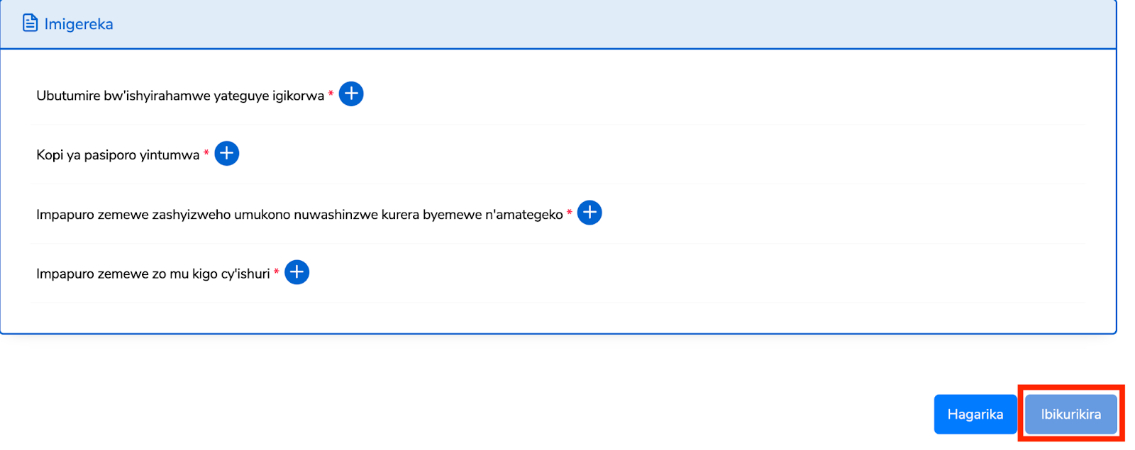 Ongeraho Imigereka yose uko isabwa,hanyuma ukande “Ibikurikira”.