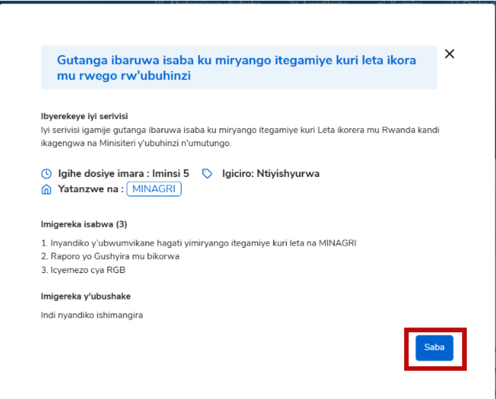 Intambwe ya 2. Kanda kuri “Saba” kugira ngo utangire ubusabe.