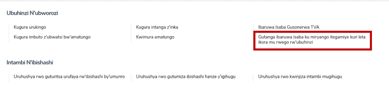 Intambwe ya 1: Sura urubuga rwa IremboGov kuri www.irembo.gov.rw, ujye mu cyiciro cya “Ubuhinzi N’ubworozi”, hanyuma ukande kuri “Ibaruwa isaba ku miryango itegamiye kuri leta ikora mu rwego rw’ubuhinzi.”