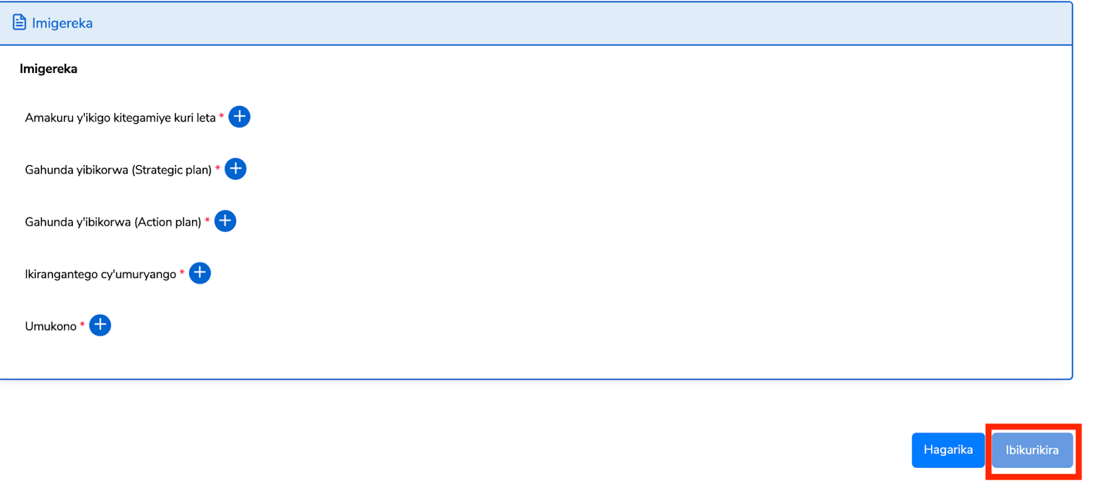 Icyitonderwa:Kuramo inyandikorugero ya gahunda y’ibikorwa hanyuma uyongere nk’umugereka kuri ubu busabe.