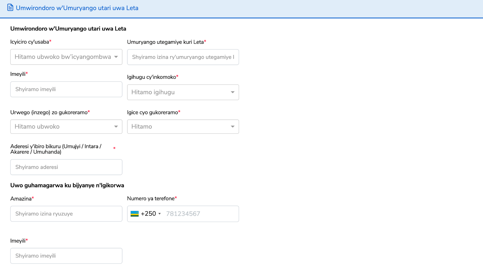 Kuramo inyandikorugero y’ibisabwa bijyanye n’ubwoko bw’ikigo cyawe.Wuzuze inyandiko uyigerekeho kuri iyi dosiye.