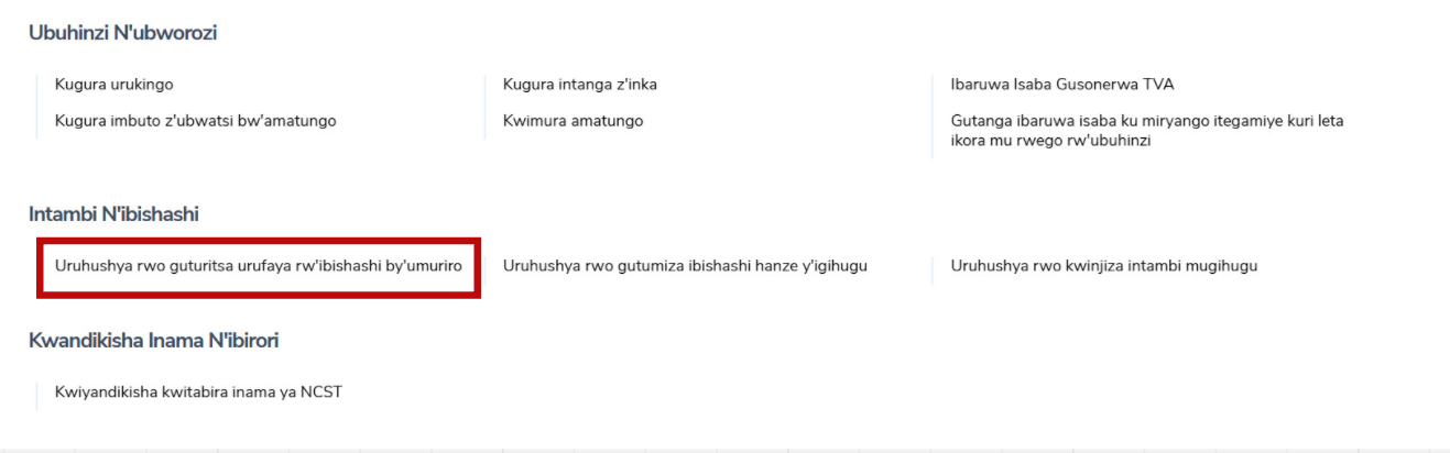 Intambwe ya 1: Sura urubuga rwa IremboGov kuri www.irembo.gov.rw, hanyuma ukande kuri serivisi ya “uruhushya rwo guturitsa urufaya rw’ibishashi by’umuriro” munsi y’icyiciro cya “Intambi N’ibishashi.”