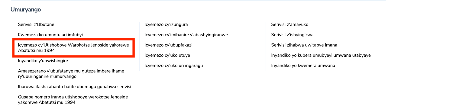 Iyi serivisi itanga icyemezo kubatishoboye barokotse jenoside yakorewe abatutsi mu 1994.Iki cyemezo gikora nk’inyandiko y’ingenzi kubarokotse iyo bashaka gusaba ubafasha butandukanye butangwa na Minisiteri y’ubumwe n’inshingano mboneragihugu.(MINUBUMWE).