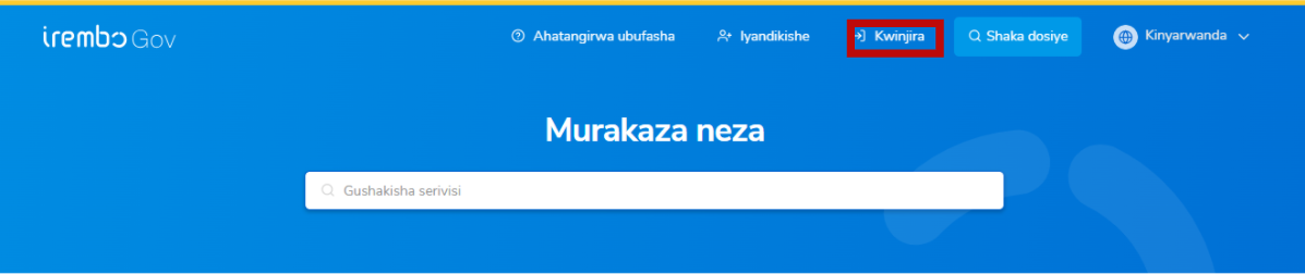 Kanda kuri Injira kugira ngo utangire gusaba iyi serivisi.
