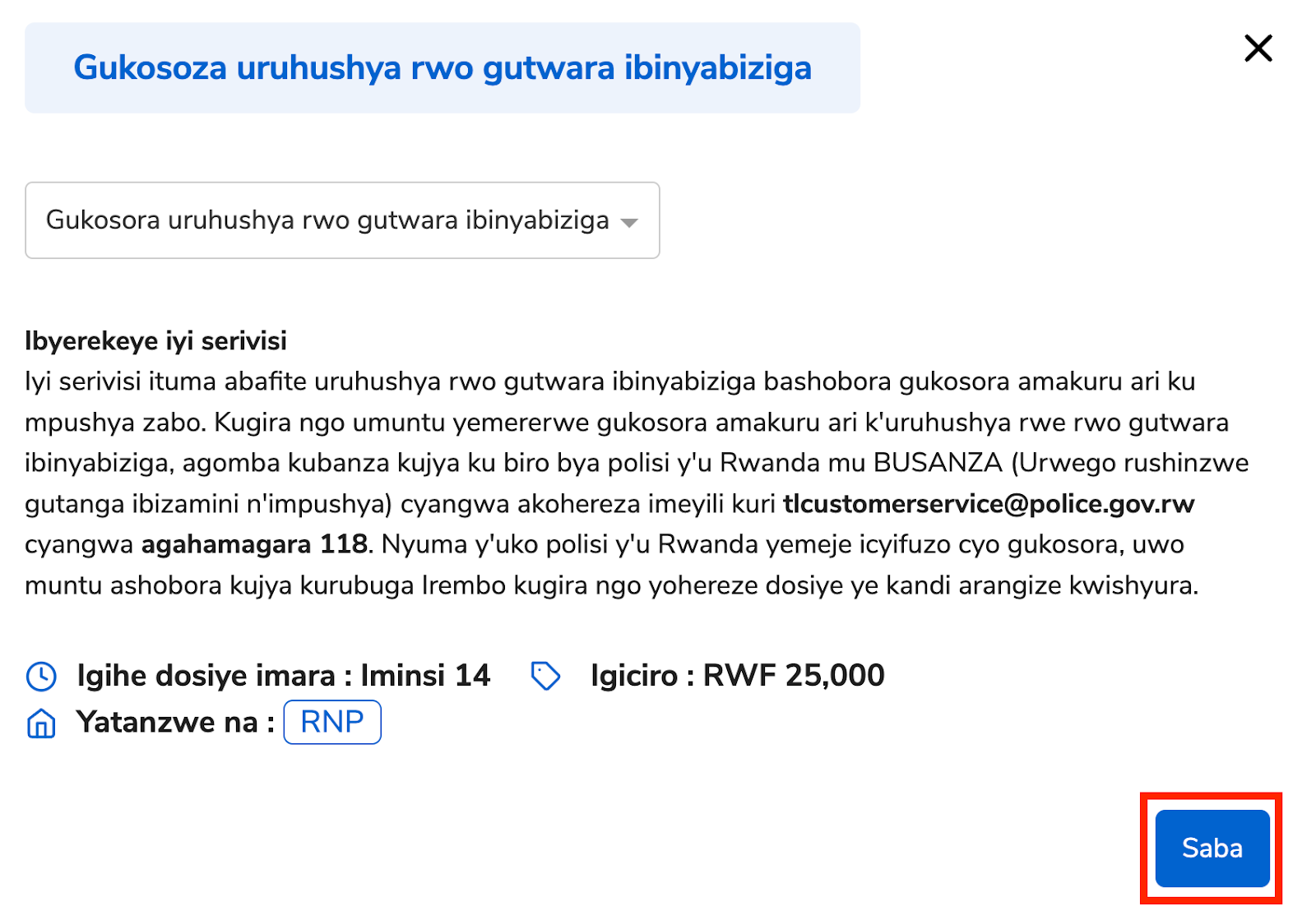 Abasaba dosiye bagomba kuba barahawe uburengazira na polisi y'u Rwanda kugira ngo basabe iyi serivisi.