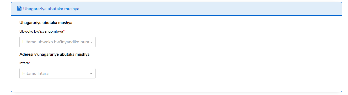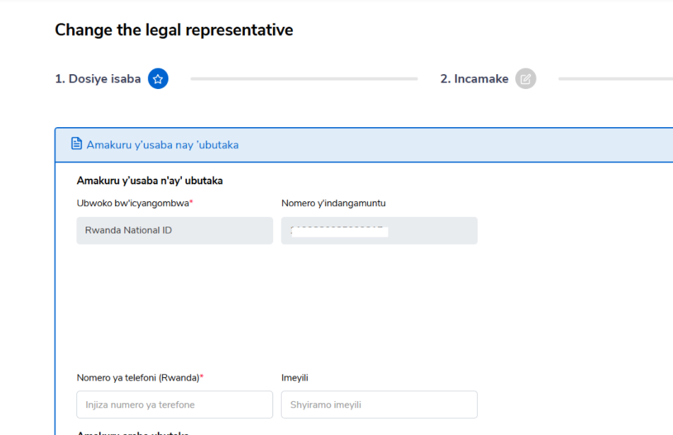 Injiza amakuru y’Uhagarariye mushya byemewe n’amategeko, harimo amakuru y’indangamuntu ye na aderesi yaho atuye.