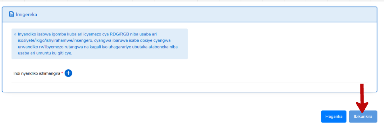 Shyiraho (upload) inyandiko zisabwa mu ngano (size) n’imiterere (format) bikwiye, hanyuma ukande kuri “Ibikurikira.”