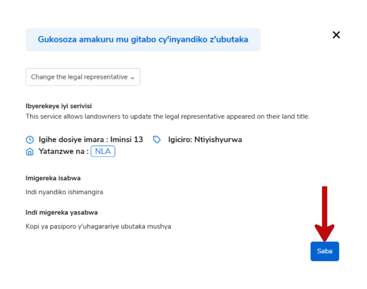 Iyi serivisi ifasha ba nyiri ubutaka kuvugurura cyangwa guhindura uhagarariye byemewe n’amategeko wanditse ku cyangombwa cy’ubutaka bwabo. Iyi serivisi itangwa n’Ikigo cy’Igihugu gishinzwe Ubutaka (NLA).