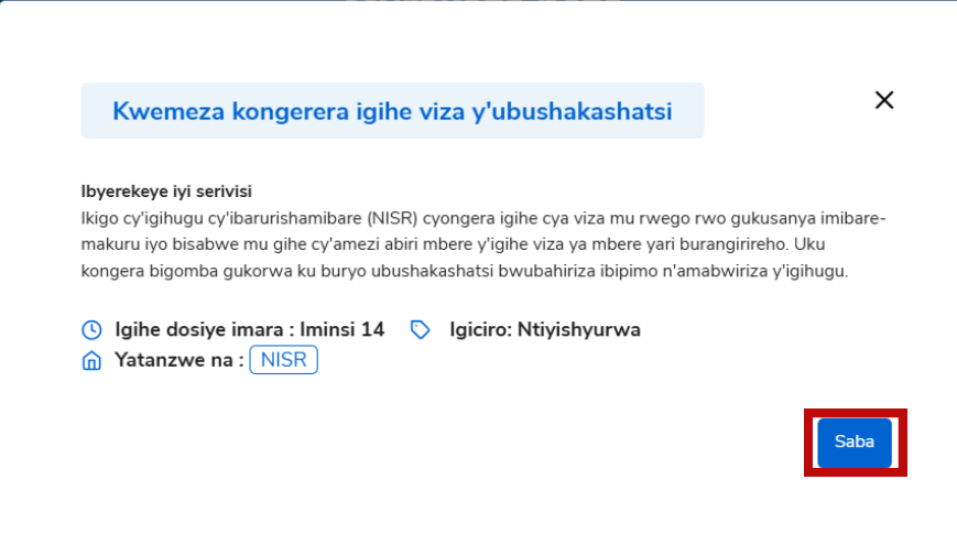Igihe cyo gutunganya ubusabe: iminsi 14, Igiciro cya serivisi: Ntiyishyurwa