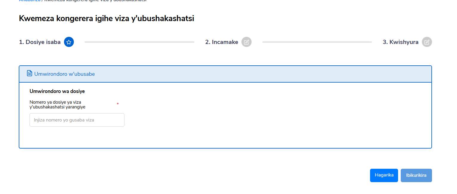 Andika nomero ya mbere y’ubusabe bwa viza yo gukora ubushakashatsi, urebe amakuru ari hepfo, kandi uhamye neza ko ari yo.