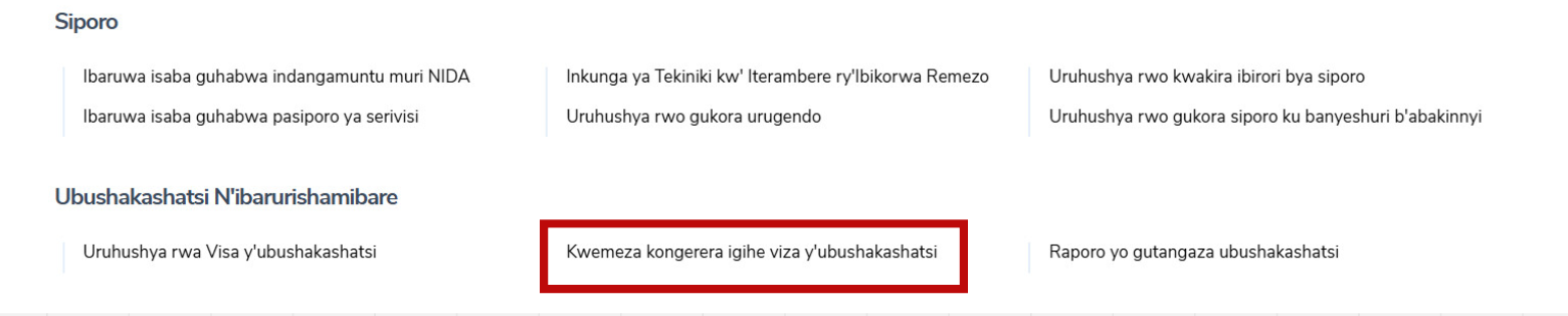 Sura urubuga rwa IremboGov kuri www.irembo.gov.rw, hanyuma ujye mu cyiciro cya “Ubushakashatsi N'ibarurishamibare” maze ukande kuri “Kwemeza kongerera igihe viza y'ubushakashatsi.”